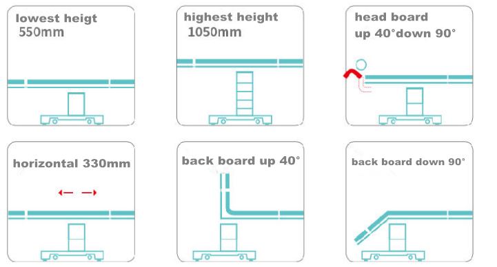 Son mouvement horizontal est de 330 mm, avec cinq roues centrol mobiles, il peut également correspondre à la salle d’imagerie C-arm ou.